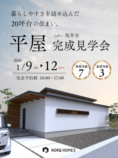 今回は、3月21日(木)~3月24日(日)に開催される、坂井市の完成見学会のご紹介です♪