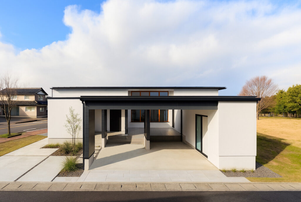 3方を道路に囲まれた立地条件を活かしつつ、建物配置や外観デザインを設計しました。