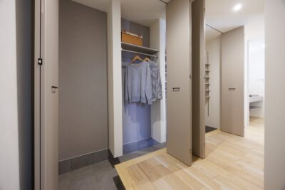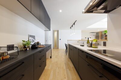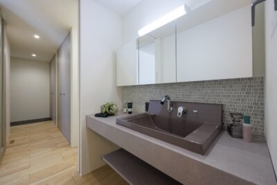 造作収納やスタディースペース、タイル使いが印象的な洗面など、使いやすさとデザインを両立。