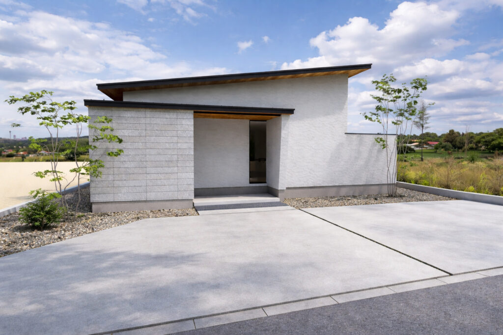 グレーの塗り壁とSOLIDOのアクセントが、時を重ねても美しい外観をつくります。