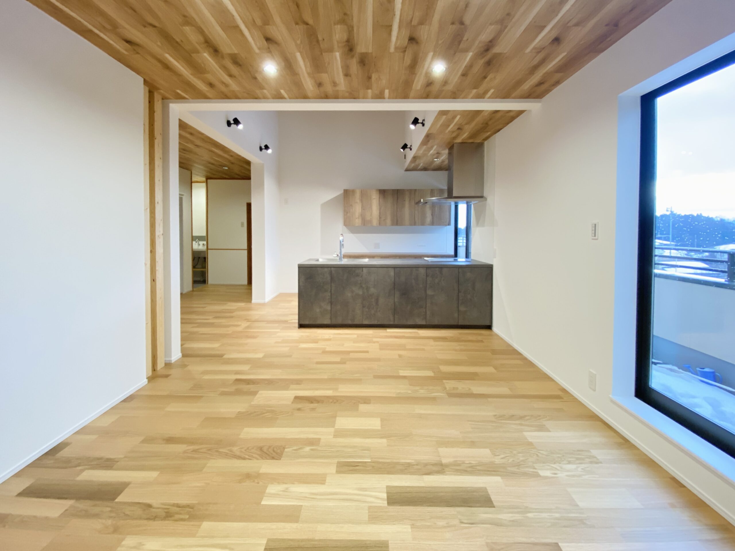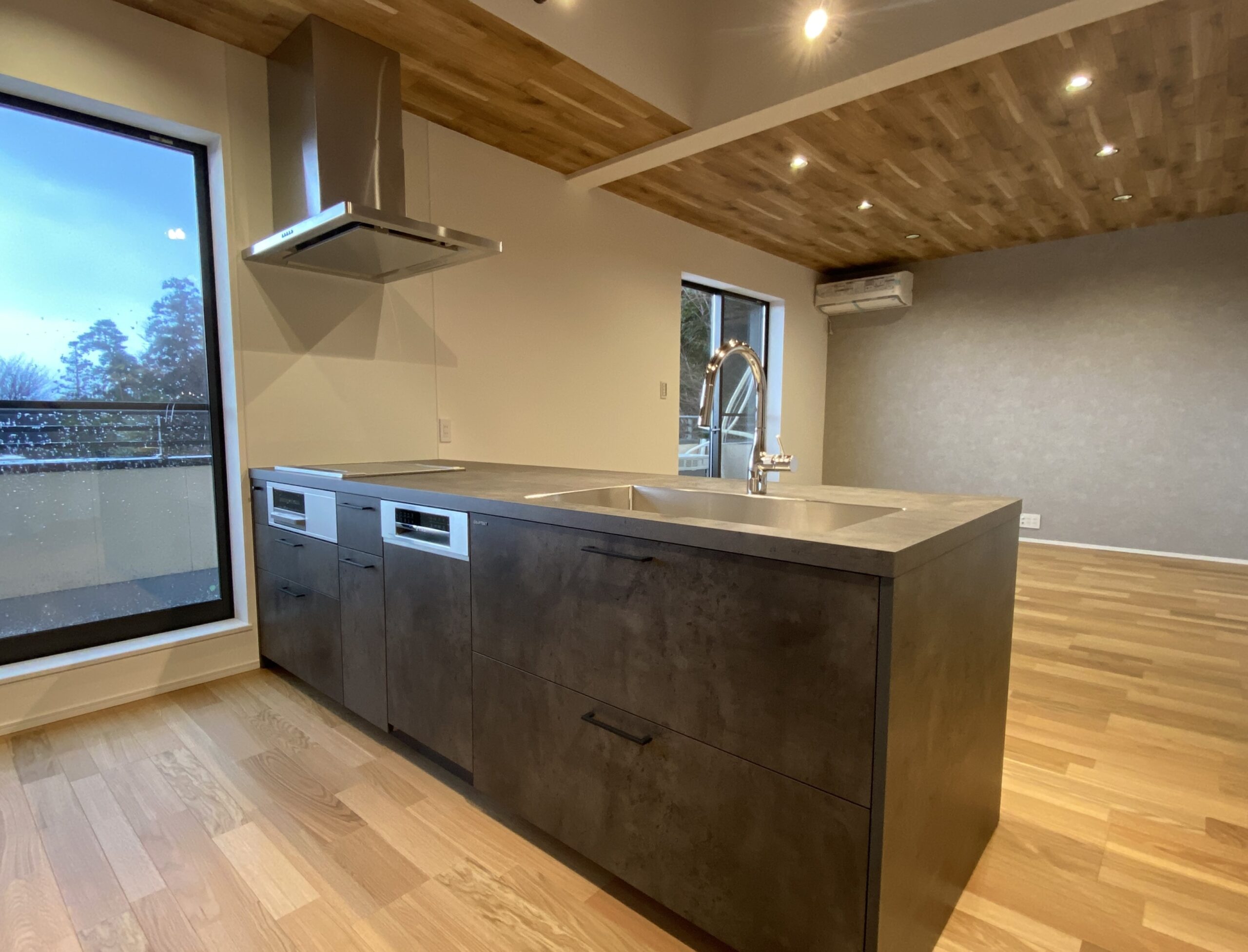 キッチンにはセミオーダーキッチンを取り入れて、重厚感があるデザイン性の高い間取りになりました。