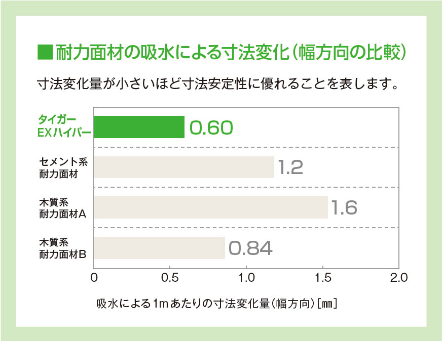 耐力面材の膨張や収縮による寸法変化が小さく、施工後に不具合が起こりにくいのが特徴です。